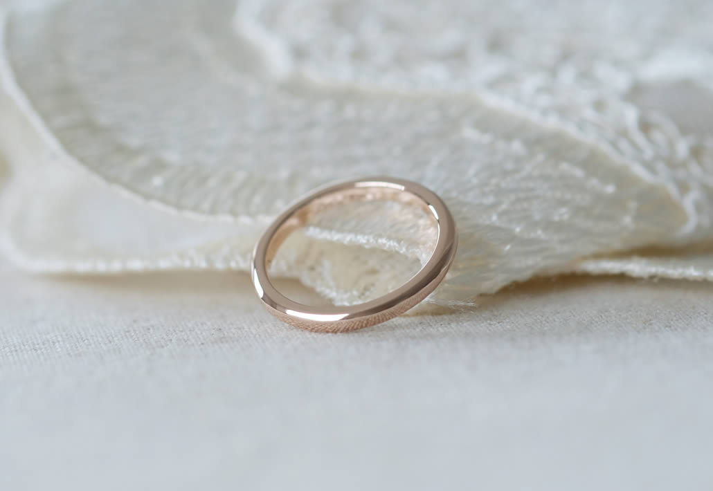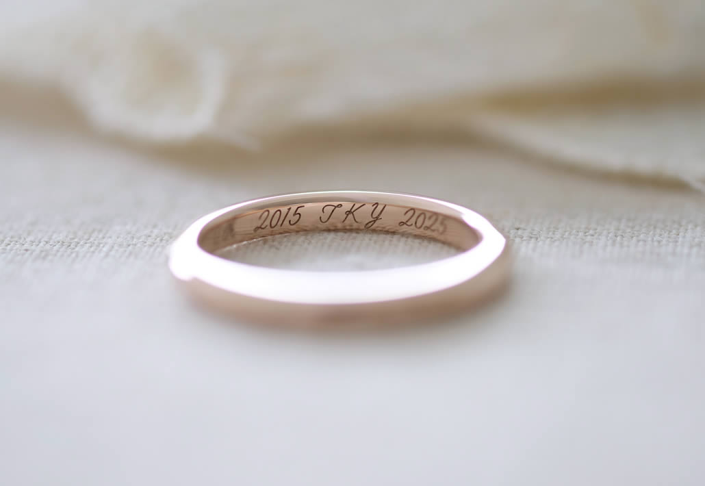 ご結婚指輪との重ね着けを考慮して、シンプルなピンクゴールドにてお作りしたことでこれから先も愛用していけるアニバーサリーリングとなりました。
