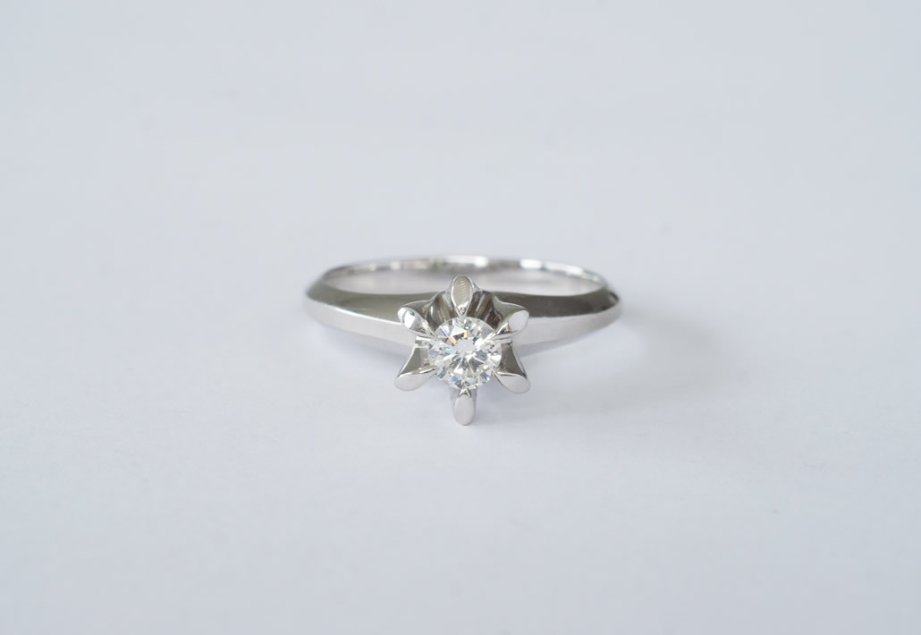 長らく眠っていた立爪婚約指輪を、普段使いしやすいネックレスへリフォームをご希望でした。