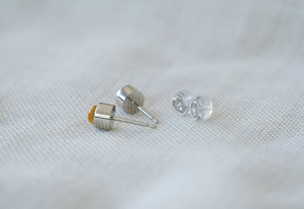 愛犬のお名前にちなんだ「琥珀」の天然石を石留する際に、石の底にあたる部分に納骨させていただいております。石外れや納めたお骨に影響がないように、プラチナの枠でしっかりと固定するフクリン留でお作りいたしました。