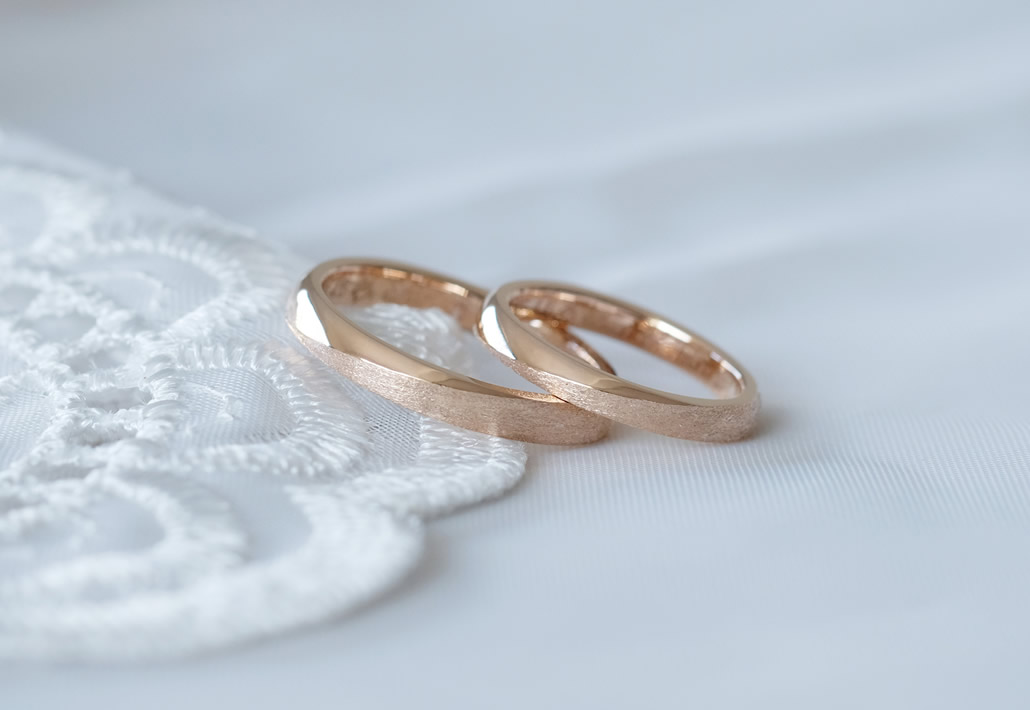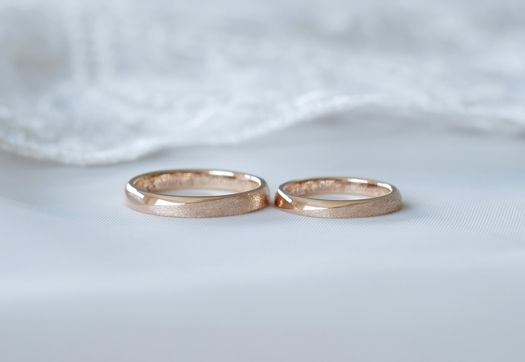 肌馴染みが良い優しい色合いが人気のピンクゴールドでお作りした結婚指輪です。