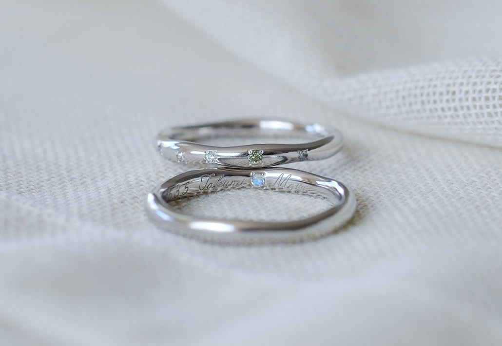 男性:ムーンストーン 女性:ダイヤモンド、ペリドット